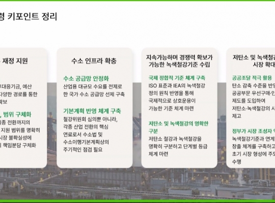 국내 철강업계의 저탄소 전환을 이루려면 예산의 재설계, 녹색철강 기준의 명확화, 수소 인프라 구축, 공공조달 중심의 수요창출 방안이 K-스틸법(철강산업 저탄소 전환 촉진법) 시행령에 반드시 반영돼야 한다는 제언이 나왔다.기후솔루션은 25일 오후 미디어브리핑에서 "시행령이 어떻게 설계되느냐에 따라 철강산업 넷제로 전환의 성패가 갈린다"며 4대 핵심 과제를 제시했다.