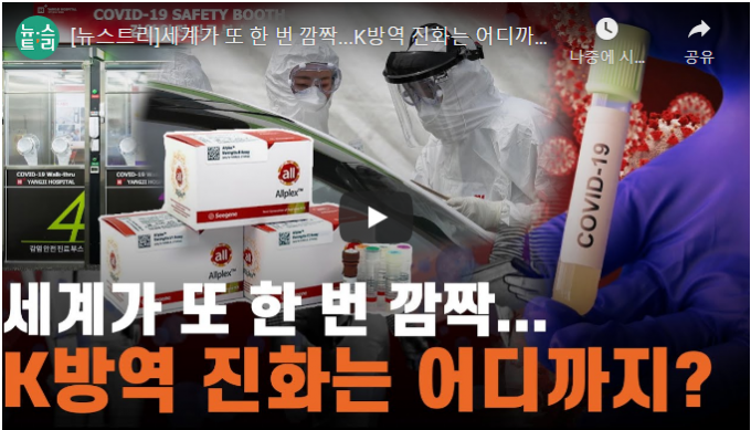 진단키트에 이어 1,2,3세대 선별진료소로 혁신과 발전을 거듭해온 한국 만의 방역시스템 'K-방역', 그 진화의 끝은 어디일까. 새로운 변화가 자못 기대된다.