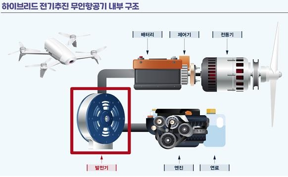 전기연구원은 이 기술을 적용하면 순수 전기추진 무인항공기와 비교해 운영시간을 30분에서 2시간으로 확대할 수 있다고 설명했다.