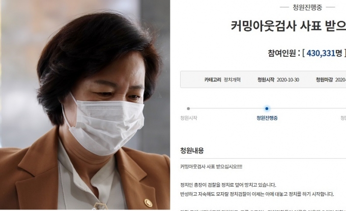 청원인은 "정치인 총장이 검찰을 정치로 덮어 망치고 있다"며 윤석열 검찰총장을 정면으로 비판하며 "자성의 목소리는 없이 오히려 정치인 총장을 위해 커밍아웃하는 검사들의 사표를 받아라"고 요구했다. 그는 이어 "검찰개혁의 시작은 커밍아웃하는 검사들의 사표를 받는 일부터 시작"이라며 "대한민국 적폐청산의 출발! 검찰개혁 갑시다!"고 주장했다.