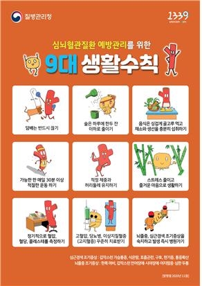 요즘처럼 갑자기 기온이 뚝 떨어지는 겨울철에 많이 발생하는 심근경색이나 뇌졸중 등 심뇌혈관질환을 예방관리하려면 9대 생활수칙을 지켜야 한다.