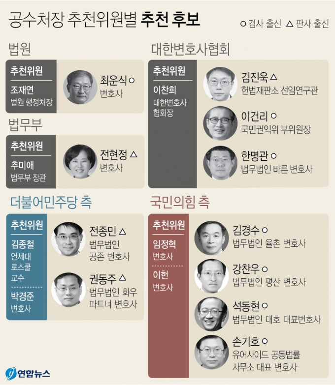 사실 공수처법은 지난해 12월 30일 국회를 통과한뒤 올 7월 15일 시행됐지만, 공수처장 추천을 놓고 여야가 입장차를 좁히지 못하면서 출범조차 못하고 있었다. 여당은 검찰 외부에서 공수처장을 추천해야 한다는 입장이었고, 야당은 검찰 내부에서 공수처장을 추천해야 한다는 입장이 대립했다.