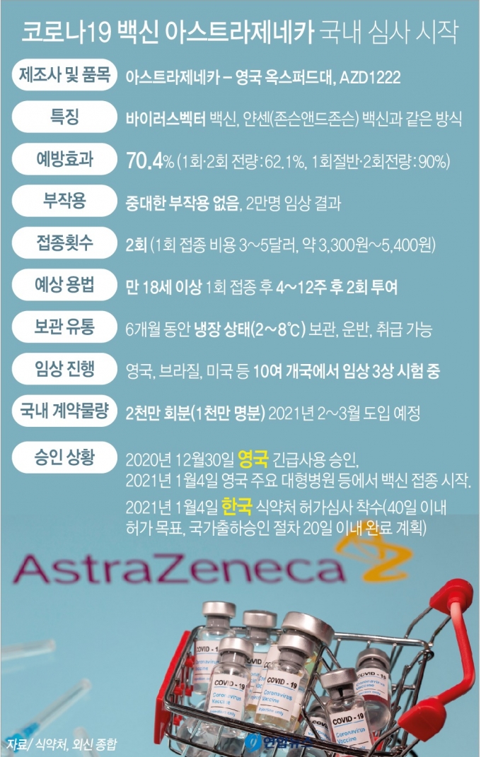 통상 의약품에 대한 품목허가는 180일이 넘게 걸리지만 아스트라제네카 백신에 대한 품목허가는 20일 이내에 완료하겠다는 것이 식약처의 목표다. 이와 동시에 국가출하승인 절차도 함께 진행해 접종시기를 바짝 앞당겨 늦어도 2월말부터 접종이 가능하도록 하겠다는 계획이다.