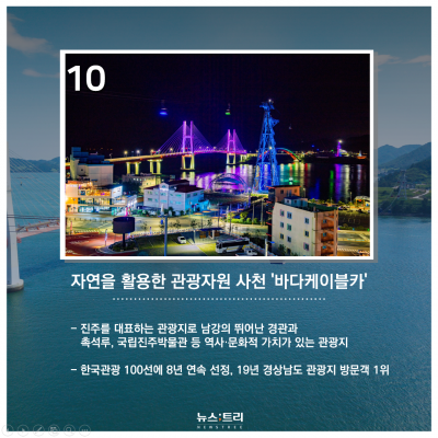 1일 한국관광공사 경남지사는 코로나19에서도 안심하고 여행할 수 있는 '안심 나들이' 10곳을 발표했다. 안심나들이로 선정된 10곳은 △진주 진주성 △남해 독일마을 △통영 디피랑 △합천 영상테마파크 △김해 가야테마파크 △창원 진해해양공원 △하동 삼성궁 △거제 내도 △고성 당항포관광지 △사천 바다케이블카 등이다.