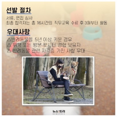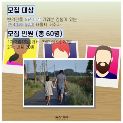 모집 대상은 반려견을 키워본 경험이 있는 만 40~67세 서울시 거주자로 △반려동물을 5년 이상 키운 경우 △위탁 또는 방문 펫시터 경험 보유자 △반려동물 관련 자격증을 가진 사람을 우대한다.