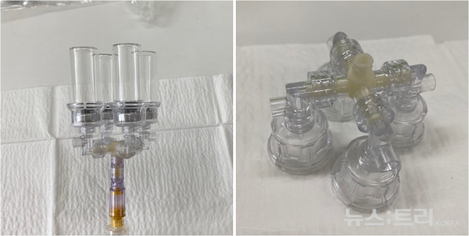 그런데도 국내 대부분의 병원들이 이 장치를 이용하지 않는 것은 의료보험급여에 포함돼 있지 않기 때문이라는 게 박 대표의 설명이다. 박정건 대표는 "코로나19 백신을 접종할 때도 폐쇄형 약물전달장치를 이용하면 백신을 최대한 아낄 수 있다"면서 "지금은 간호사의 숙련도에 따라 1병당 7명까지 접종할 수 있다고 하는데 이 장치를 이용하면 숙련 안된 간호사도 7명분의 백신을 추출할 수 있다"고 말했다.