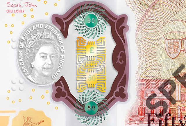 50파운드 신권이 발행되면 영국의 모든 지폐가 '중합체'(폴리머)로 완전히 교체된다. 현재 50파운드 지폐를 제외한 5파운드, 10파운드, 20파운드 지폐는 모두 폴리머로 이루어져 일반 종이 지폐보다 내구성이 뛰어나다.