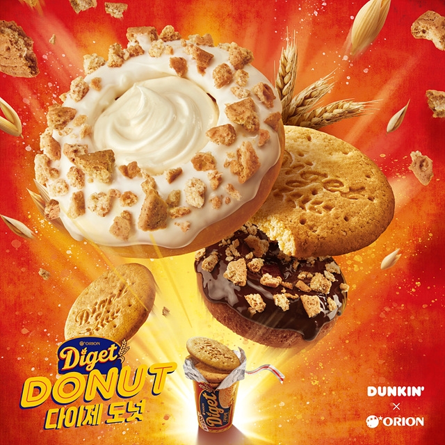 '다이제스트'는 통밀을 재료로 만든 과자다. 던킨은 달콤한 도넛에 바삭한 식감을 살리기 위해 '다이제스트' 과자를 잘게 부숴 만든 크럼블을 듬뿍 올린 '다이제 크럼블 초코링'을 개발하고 4월 1일 시판한다. '다이제 크럼블 초코링'은 1개당 1900원이다.