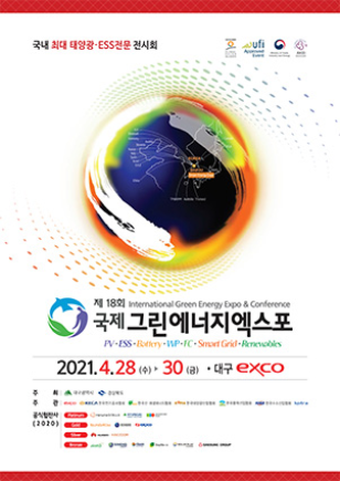 ◇ 2021 국제 그린에너지 엑스포 장소 : 대구 엑스코 & 온라인 날짜 : 2021년 4월 28일(수) ~ 30일(금) 국내외 신재생에너지산업 및 시장 생태계를 빠르고 정확하게 확인할 수 있는 '2021 국제 그린에너지 엑스포'가 오는 28일부터 3일간 대구 엑스코에서 개최된다.