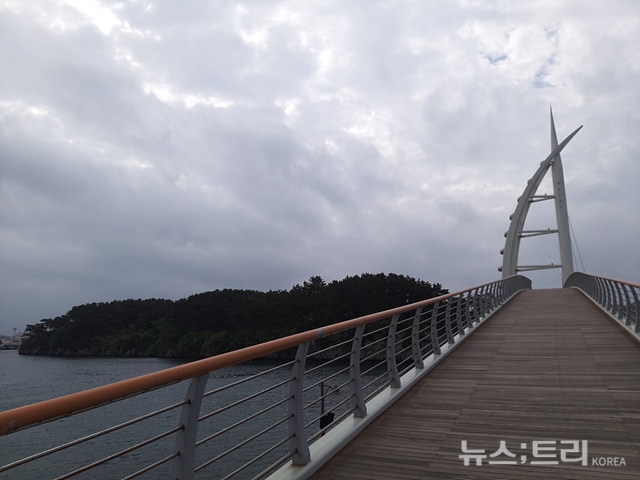 새섬은 서귀포항과 가깝다. 가까워도 가기가 불편했다. 새섬으로 가려면 오래 기다려야 했다. 간조 때까지 기다려 새섬목을 건너야 했다. 이런 불편은 2009년에 막을 내렸다. 서귀포항과 육지를 연결해주는 새연교가 건설됐다. 새연교는 새로운 인연을 만들어가는 다리라는 뜻이다. 국내 최초로 외줄케이블 형식의 사장교로 만들었다. 길이 169m의 짧은 다리다. 짧지만 이름다움이 뛰어나다. 밤에는 불을 밝혀 빛의 향연을 보여주고 있다. 새연교는 새섬을 관광명소로 만들었다. 사람들이 편히 새섬을 찾게 만들었다. 새섬의 고요함을 느끼게 해줬다.