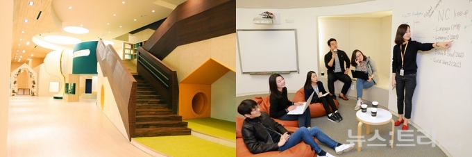 게임콘텐츠에 익숙한 젊은 층에게 엔씨는 '일하고 싶은 기업'으로 꼽혀 왔다. 단순히 익숙하다는 것을 넘어 직원복지와 근무환경 등도 일하기 좋은 직장으로 꼽힌다. 엔씨는 '일하기 좋은 공간, 꿈을 실현해 나가는 공간'을 만들기 위해 다양한 복지제도를 운영하고 있다. 특히 13년째 운영하고 있는 '웃는 땅콩'은 사내 어린이집의 모범적인 사례로 평가받고 있다. 열린 사고를 길러주는 자체 개발 커리큘럼, 정서적 안정을 키울 수 있는 생활 환경, 안전한 유기농 식단 등을 제공하며 정부 어린이집 평가인증 제도에서 가장 높은 등급인 A등급 최우수 평가를 받았다. 직원들의 학습과 성장을 위한 '엔씨유니버시티'(NC University)도 운영한다. 게임기획, 개발, 아트 등 기술 관련 수업뿐 아니라 리더십, 어학, 문화예술, 스토리텔링 등 분야별 수업도 열려 사내에서 다양한 분야의 자기 개발이 가능하다.