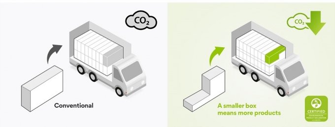 포장상자를 기역자로 바꾸면서 여러개를 겹쳐서 실을 수 있게 돼 물류 효율도 높아졌다. 한꺼번에 많은 양을 운송할 수 있게 된 것이다. LG전자는 "직사각형 포장상자로 옮길 때보다 물건을 최대 58% 더 실을 수 있게 됐다"고 밝혔다. 유통과정에서도 탄소배출을 그만큼 줄이는 셈이다.