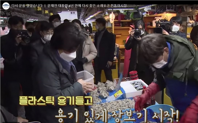 특히 같은달에는 문재인 대통령과 김정숙 여사도 힘을 보탰다. 대통령과 영부인은 인천 남동구 소래포구 전통어시장에서 용기를 들고 장을 봤다. 문 대통령은 최근 열린 P4G 서울 행사에서 '용기내 캠페인'을 소개, 한국의 '풀뿌리 환경 보호 운동'을 세계에 알리기도 했다.