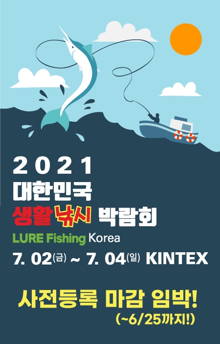 '2021 대한민국생활낚시박람회'가 7월 2일부터 19일까지 3일간 경기도 킨텍스 개최된다.