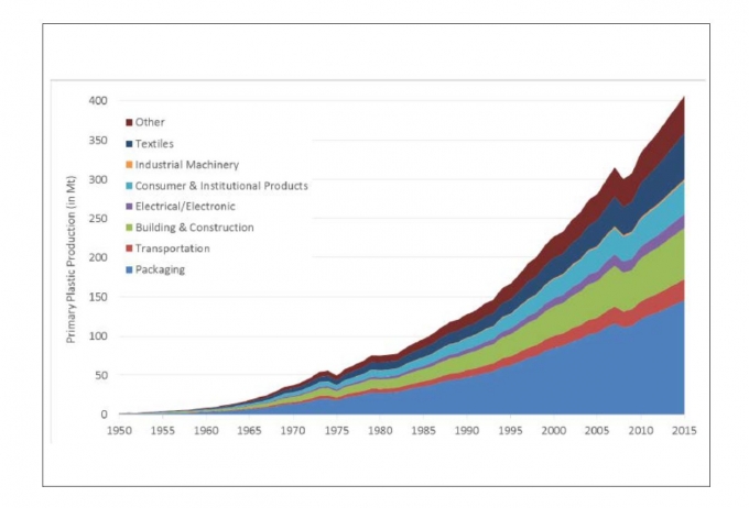 플라스틱이 포장 용기 다음으로 많이 사용되는 곳은 어딜까. 국제학술지 '사이언스 어드밴스'(Sience Advances)가 조사한 바에 따르면 2015년까지 플라스틱 산업분포도에서 가장 많은 비중을 차지한 것은 '포장용기'였고, 그 다음으로 '건축·건설' 산업이었다.