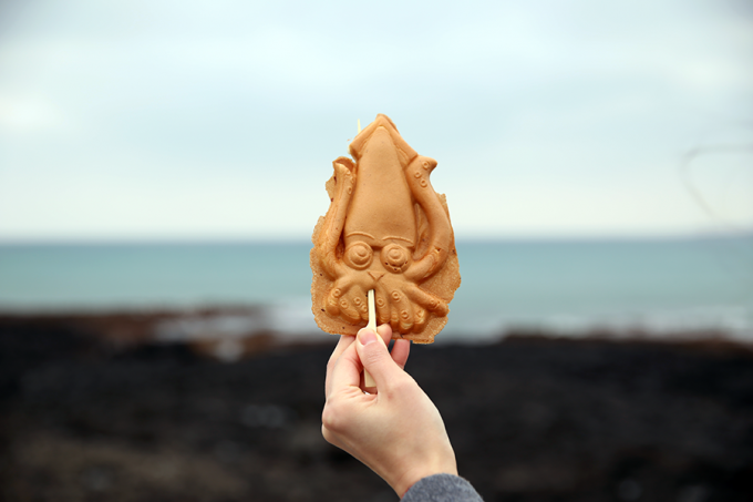 제주 서귀포시의 대표적 관광지 '용머리해안'에 가면 제주의 명물 '한치빵'을 만날 수 있다. 제주에서 생산된 메밀과 보리로 만든 반죽에 잘게 다진 한치와 생모짜렐라 치즈를 넣은 이 빵을 맛보기 위해 가게 앞은 온종일 길게 줄이 늘어서 있다. 코로나19로 인해 사람들의 발걸음이 뜸해졌는데도 불구하고 이 가게는 항상 붐빈다고 한다.