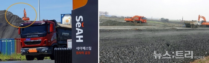 미꾸라지와 붕어가 10분만에 죽어버릴만큼 중금속 성분이 가득한 제강슬래그가 새만금에 13만톤이 넘게 반입됐다. 이 제강슬래그는 군산시가 '새만금 육상태양광 2구역 사업부지내 차량 진·출입로 도로공사'를 위해 지난 4월 29일부터 세아베스틸로부터 무상으로 공급받기 시작한 것이다.