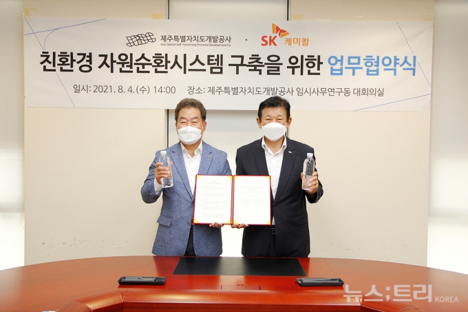 양사는 제주시의 제주개발공사 업무동에서 SK케미칼 전광현 대표이사와 제주개발공사 김정학 사장이 참석한 가운데 '페트병 리사이클 생태계 구축'을 위한 업무협약을 체결했다고 5일 밝혔다.
