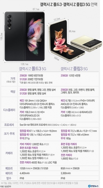 삼성전자의 폴더블 스마트폰 '갤럭시Z 폴드3'와 '갤럭시Z 플립3'를 공개했다.