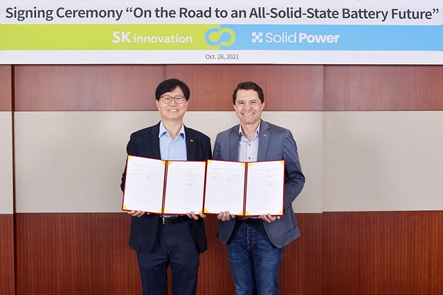 SK이노베이션은 미국의 전고체 배터리 기업 솔리드파워(Solid Power)에 3000만달러(약 353억2500만원)를 투자하고, 앞으로 차세대 전고체 배터리를 공동개발 및 생산하기로 했다고 28일 밝혔다.