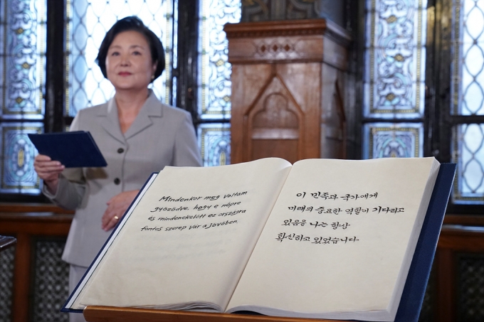 한편 김 여사가 방문한 헝가리 국가기록원은 1756년 유럽 최초의 기록보존소로 설립돼 현재는 3000km에 달하는 방대한 문서를 보존·관리 중이다. 소장 기록 중에는 17세기 이후 우리나라와 관련한 기록이 다수 있으며, 한국 국가기록원은 1989년 헝가리와의 수교 이후 관련 기록 7만여건을 수집했다.