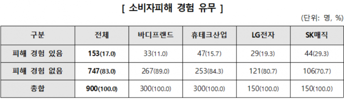 9일 한국소비자원이 지난 9월 7일~17일 온라인으로 바디프렌드와 휴테크산업, LG전자, SK매직 등 안마의자 렌탈서비스 상위 4개사의 이용자 900명을 대상으로 만족도와 이용실태 등을 조사한 바에 따르면, 응답자의 17%가 피해경험이 있다고 답했다.
