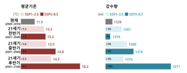 다만 온실가스 배출을 줄여 2050 탄소중립을 달성할 경우 기온 상승폭은 크게 줄일 수 있다. 저탄소 시나리오대로 진행하면 국내 연평균 기온은 2.3℃, 연평균 강수량은 3% 증가하는 데 그칠 예정이다. 따라서 기상청은 적극적인 탄소 감축이 필요함을 강조했고, 이를 위해 재생에너지 기술로 화석연료 사용을 최소화하고, 친환경적으로 지속가능한 경제성장 기반을 마련할 것을 촉구했다.