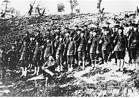 ▲일장기를 들고 부대로 들어가는 일본군 19사단 보병 75연대 병사들 '대한군정서'는 대종교 그 자체였다. 1913년 중광단, 1919년 자유공단・정의단, 1920년 대한군정서로 이어진 무장투쟁 단체는 대종교단의 지원으로 설립됐기 때문이다. 당시 일제의 기록에서도 이같은 내용을 찾을 수 있다. 1920년 10월 14일 기록된 일본 외교사료관 '鮮人ノ行動ニ關スル件'에 의하면 '군정서에 속하는 자 대부분은 대종교인'(不逞團關係雜件/ 朝鮮人ノ部/ 在西比利亞 第11卷)이라고 기술돼 있다.