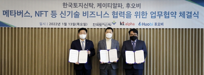이를 위해 KT알파는 한국토지신탁, 후오비코리아와 메타버스 제휴협력을 위한 업무협약(MOU)을 체결했다고 14일 밝혔다. 이에 앞으로 3사는 가상토지·가상부동산과 같은 가상자산에 대한 거래시스템을 구축하고, 메타버스 기반의 디지털 아이템 거래 및 콘텐츠형 서비스 개발에 협력할 계획이다.