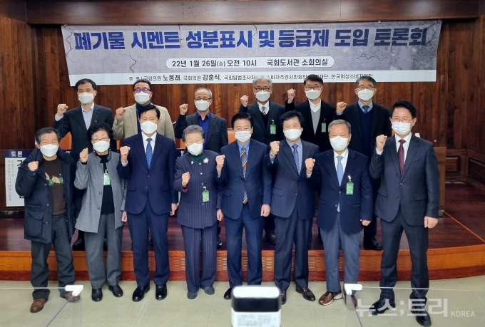 국회 환경노동위원회 노웅래 의원(더불어민주당)과 강훈식 의원(더불어민주당), 그리고 환경단체들의 공동주최로 26일 국회도서관 소회의실에서 열린 '폐기물 시멘트 성분표시 및 등급제 토론회'에서 쓰레기 시멘트의 심각성이 제기되자, 정책적 대안으로 이같은 의견들이 제시됐다. 함께 한 시민단체는 소비자주권시민회의, 환경재단, 한국여성소비자연합 등이다.