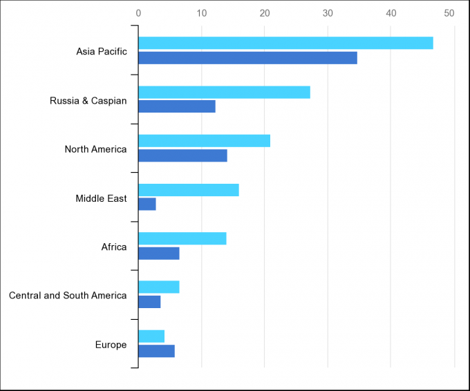 IEA가 아시아태평양 지역에서 실제로 측정한 메탄가스의 양은 4660만톤인데, UNFCCC에 보고한 배출량은 3460만톤이었다. 러시아의 실제 배출량은 2720만톤이지만 UNFCCC에 보고된 배출량은 1220만톤이고, 북미의 실제 배출량은 2090만톤인데 UNFCCC에 보고된 양은 1400만톤에 그쳤다.