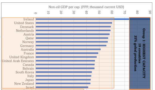석유를 제외한 1인당 GDP가 2만8000달러에 육박하는 14개국은 2030년까지 43%를 감축하고 2039년까지 생산을 중단해야 한다. 해당 국가들은 전세계 석유·가스의 30%를 생산하고 있으며 사우디아라비아, 쿠웨이트, 카자흐스탄 등이 여기에 속한다.