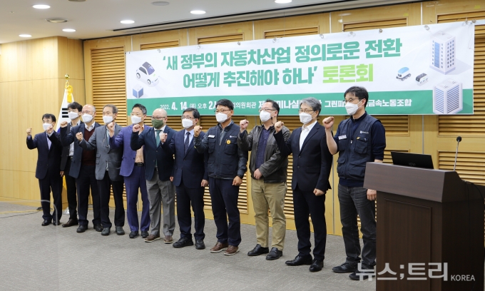 14일 그린피스와 전국금속노동조합 공동주관으로 국회의원회관 제1세미나실에서 열린 '한국 자동차산업의 정의로운 전환을 위한 노조의 역할과 방향' 토론회에서 자동차산업의 정의로운 전환이 어떤 원칙을 기반으로 어떤 형태와 속도로 진행돼야 하는지에 대한 사회적 논의의 필요성이 제기됐다.