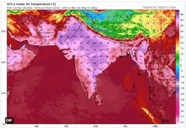 현재 인도 대륙 전역의 기온은 여름 수준으로 치솟고 있다. 인도 기상청에 따르면 지난 주말 비카네르(Bikaner)의 기온은 47.1℃로, 4월 기온이 122년만에 최고를 기록했다. 파키스탄 신드주(Sindh)의 도시 제코바바드(Jacobabad)는 지난 토요일 49℃까지 오르면서 4월 최고기온을 기록했다.