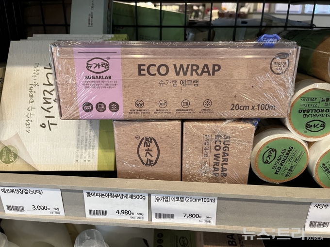 친환경 랩인 '슈가랩'을 판매하면서 재활용이 불가능한 랩으로 칭칭 포장해 판매하고 있었다. 천연 사탕수수로부터 만든 친환경 랩이라는 설명이 무색해 보였다. 플라스틱 통에 담긴 '유기농 씨앗발효 샴푸'도 마찬가지였다.