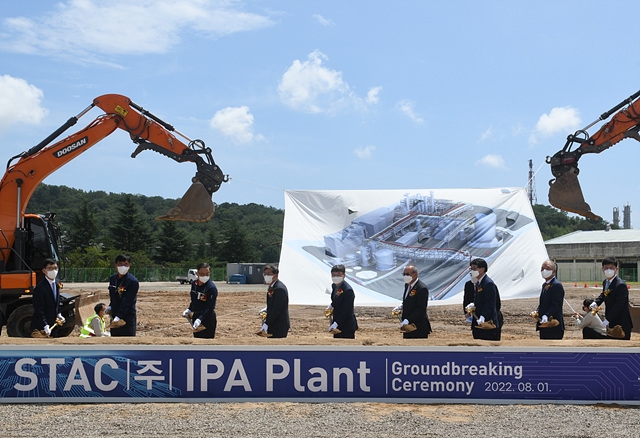 SK지오센트릭과 일본 화학전문기업 도쿠야마가 약 1200억원을 50대50으로 공동투자해 설립한 합작사 'STAC'는 1일 반도체용 세정제인 '고순도 아이소프로필알코올(Isopropyl Alcohol·IPA)' 생산공장 기공식을 가졌다.