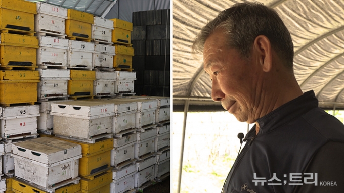 강원도 양구군의 양봉업자 이영기(69) 씨도 "한때 300통 이상 길렀는데 지금은 20통도 안남아있다"고 말했다. 그는 "꽃에서 나는 꿀도 줄고 꿀벌도 줄어드는 현상을 보고 50년 이어오던 양봉업을 접었다"면서 "이제 꿀벌없이도 열매를 맺을 수 있는 홀씨식물인 파프리카를 기르고 있다"고 말했다. 파프리카 농장을 나선 이 씨의 시선이 머문 곳은 두렁길 반대편 창고였다. 검은 차양막 아래 하얗게 빈 벌통들이 산더미처럼 쌓여있었다. 이 씨는 "빈 벌통들을 하나씩 내다버리고 있는데 아직 180통이나 그대로 쌓여있다"며 깊은 한숨을 내쉬었다.