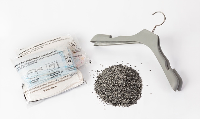 1차로 수거된 폐마스크는 기타 부자재를 혼합해 약 2톤 가량의 폴리프로필렌 펠릿 형태로 만든 후 총 2만9000여개의 옷걸이로 제작됐다. 보통 마스크나 옷걸이 소재로 쓰이는 폴리프로필렌 1톤을 생산하는데 1.5톤, 마스크를 단순히 소각할 경우 1.2톤의 탄소가 배출된다. 다시 말해 이번 재활용으로 5.4톤 가량의 탄소배출량을 줄이는 효과가 기대된다. 이는 15년생 소나무 1844그루를 심는 것과 같은 효과다.