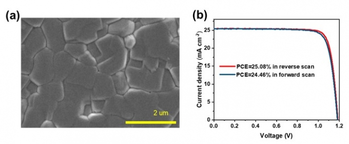 이렇게 만든 페로브스카이트 태양전지의 효율은 25% 이상으로, 현재 저독성 용매를 사용한 것 중에서 가장 높다. 이번 성과는 에너지 분야 최고 권위지인 '네이처 에너지'(Nature Energy, Impact Factor) 8월 18일(현지시간)자에 공개됐다.