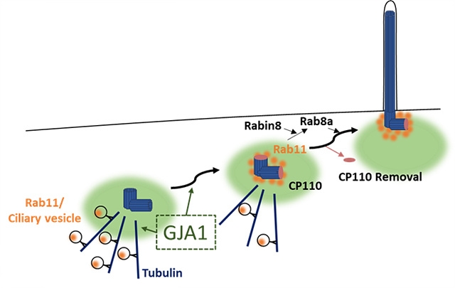 연구진은 또 GJA1 단백질이 원발성 섬모의 형성 과정에서 필수적이라고 알려진 Rab11 단백질의 이동을 조절하면서 섬모 형성에 관여하는 경로도 찾았다. 섬모의 미세소관이 자라나기 전 섬모 기저부로 Rab11 단백질이 모인 후, 일련의 과정을 통해 섬모 기저부의 뚜껑 역할을 하는 CP110 단백질이 제거돼야 섬모의 미세소관이 자라나게 된다는 것.