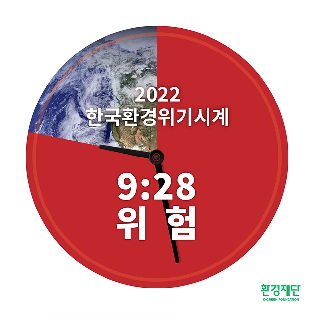 환경재단과 일본 아사히글라스재단은 세계 환경∙기후위기인식을 담은 '2022년 한국 환경위기시각'이 '9시28분'이라고 8일 발표했다. 2021년 한국의 환경위기시각은 9시38분이었다.