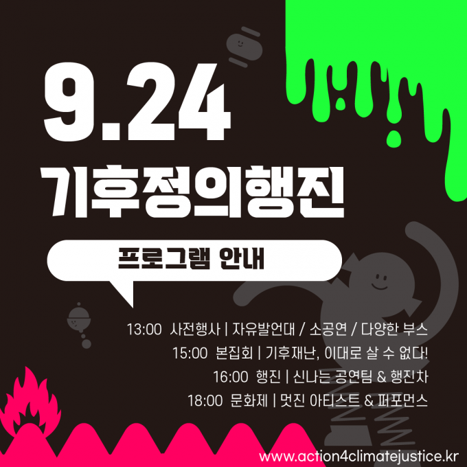올해 행사의 핵심 키워드는 '기후정의'다. 기후위기 해결은 기후부정의와 기후불평등 해결에서 출발해야 한다는 것이다. 그래서 행사의 명칭도 '924 기후정의행동'으로 정했다.