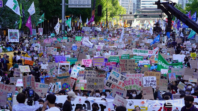 시민단체·정당·노동조합·종교단체 등 400여개 단체들이 주축이 돼 '기후재난, 이대로 살 수 없다'는 주제로 열린 이날 행사는 국내에서 열린 환경집회 가운데 사상 최대 규모다.