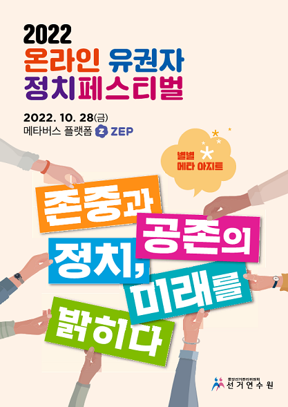 중앙선거관리위원회 선거연수원은 유권자 중심의 민주정치 발전을 위한 '2022 유권자정치페스티벌'을 오는 28일 메타버스 가상공간(ZEP)에서 개최한다고 25일 밝혔다.