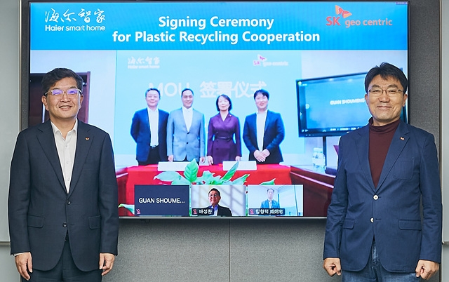 SK지오센트릭은 중국 최대 가전기업 하이얼(Haier)과도 PP등 폐플라스틱 재활용 협력을 위한 양해각서를 체결했다. 하이얼은 세계적인 가전업체로 지난해 약 43조원의 매출을 달성했다.