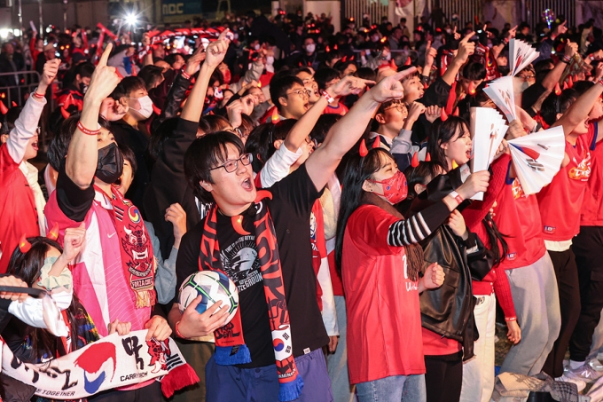 24일 밤 광화문 앞이 붉은 빛으로 물들었다. 코로나19로 인해 지난 3년간 대규모 행사가 불가능했지만 올해 거리 두기가 해제되고, 월드컵까지 돌아오면서 시민들이 모인 것이다.