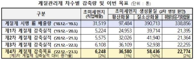 정부는 이번 계절관리제를 통해 초미세먼지(PM2.5)와 질소산화물 등 초미세먼지 생성물질 배출량을 지난 관리제 때보다 더 감축하기로 했다.