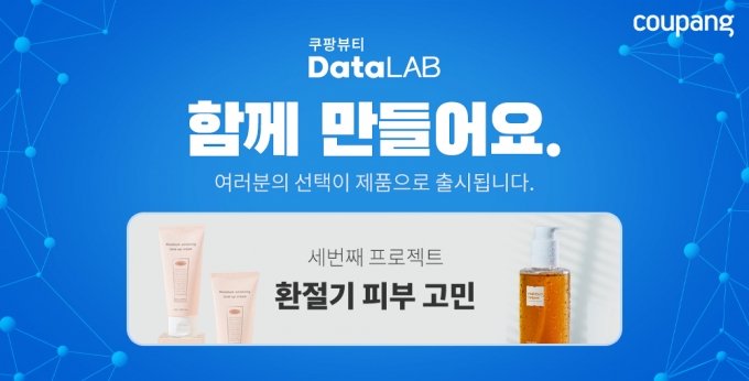 쿠팡 뷰티데이터랩은 '환절기 피부고민'을 주제로 '함께 만들어요' 3차 캠페인을 열고 지난달 14일부터 30일까지 고객 투표를 진행했다. 쿠팡 뷰티데이터랩은 10월 이후 환절기 피부케어와 관련된 키워드로 '클렌징 오일' '보습' '저자극' 제품 검색량이 증가한다는 분석에 따라 3차 캠페인 제품으로 '보습 클렌징'과 '저자극 케어'제품을 선정했다.