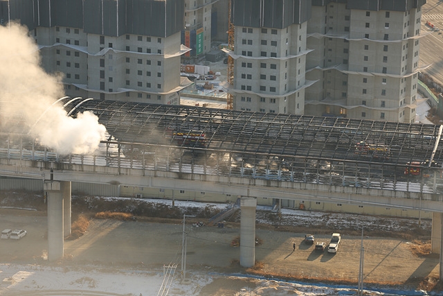 우리 주변에 방음터널과 비슷한 소재로 만들어져 화재사고에 취약한 다른 사례가 있는지 묻자 이 교수는 "현재 전국에 걸쳐 설치돼 있는 슬래브 지붕이 같은 소재"라고 답했다.