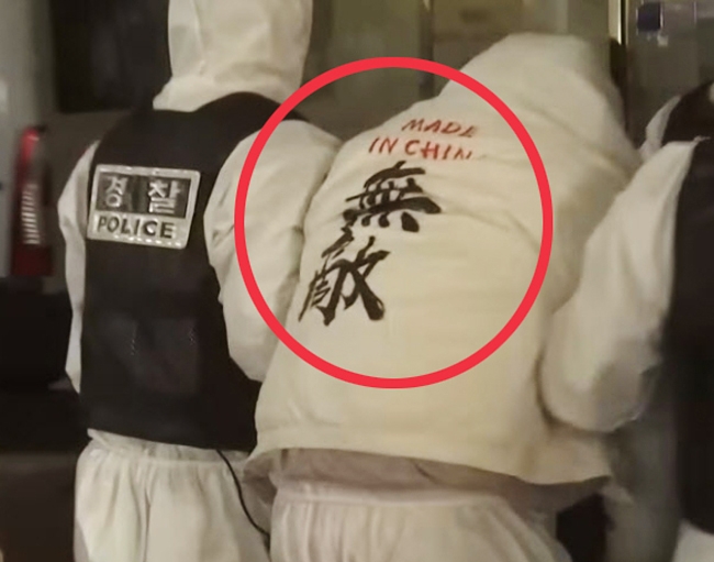 한편 검거 당시 A씨가 입고 있던 흰색 점퍼 뒤에 새겨진 'MADE IN CHINA 無敵(무적)'이라는 문구가 포착되면서 누리꾼들의 눈길을 끌었다.